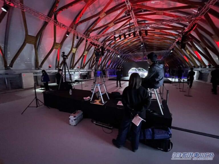 会場となったのは新豊洲 Brillia ランニングスタジアム。近未来的なゲートとAudiのエンブレムが夕暮れ時に映えていた。会場の外に展示されていたのは「Q4 Sportback e-tron」。