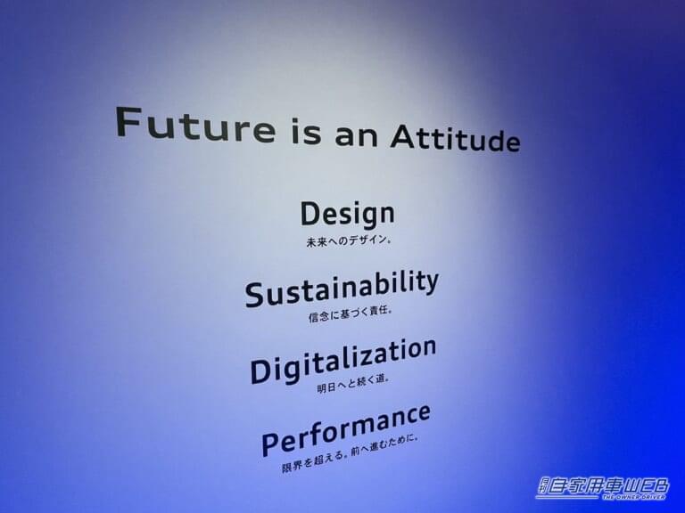 突き当たりの壁面には、Audiのロゴと未来についてのAudiの考えが記されていた。