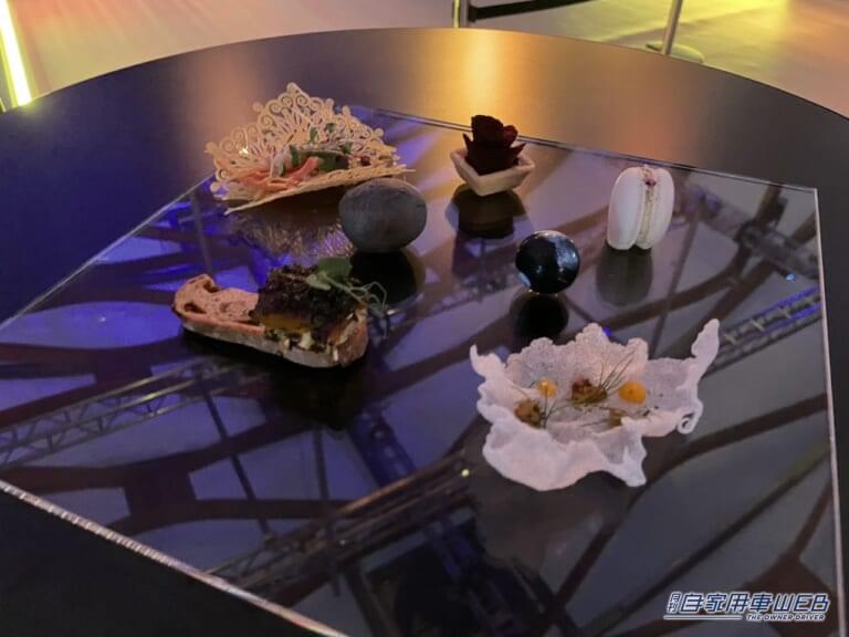 提供されていたフィンガーフードも自然をイメージしたもの。本物の石に見えるジャガイモ、美しい庭を表したベジタコス、地球をイメージしたチョコレートなど、目も舌も喜ぶものばかり。