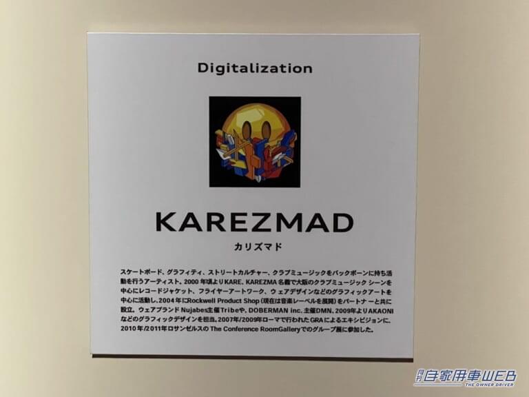 会場に設けられた大型スクリーンに映し出されていたのは「Audi Q4 e-tron」をモチーフにしたアートデザイン体験の作品。下記の4人のアーティストの限定作品を組み合わせて、アート作成を体験できるというものだ。