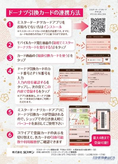 またドーナツ引換カードをミスタードーナツカードアプリに登録すると、スマートフォンでもドーナツの引き換えが可能だ。また1枚のドーナツ引換カードを複数のスマートフォンでも登録できるので、家族や友人とシェアして使うこともできる。