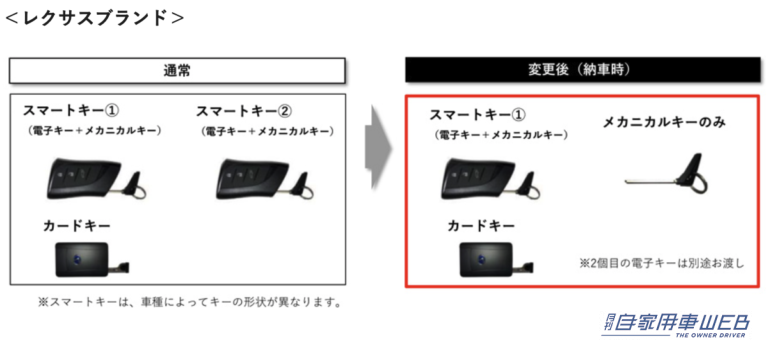 半導体不足が続く中での暫定的な対応となる。なお、2個目のスマートキー(電子キー)については、準備が整い次第、順次渡していく予定。
