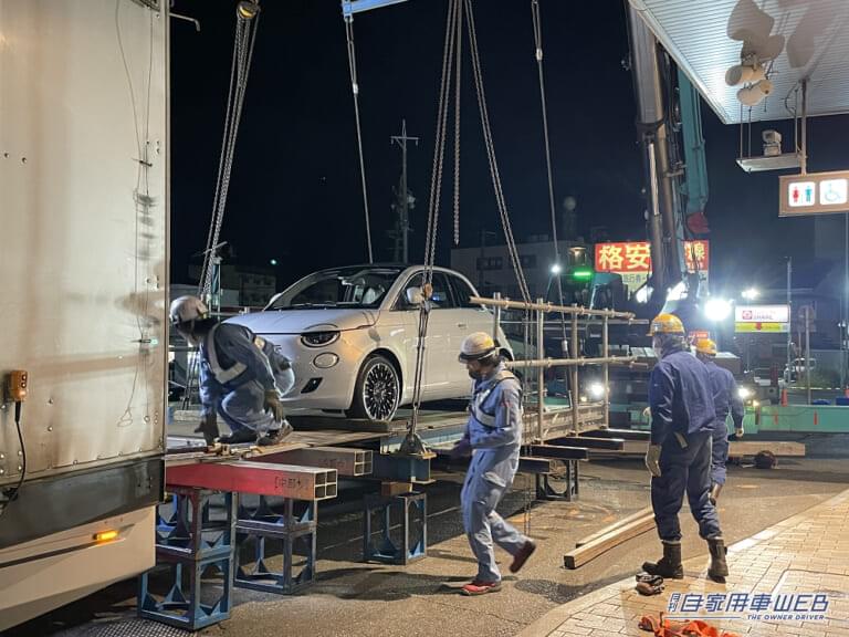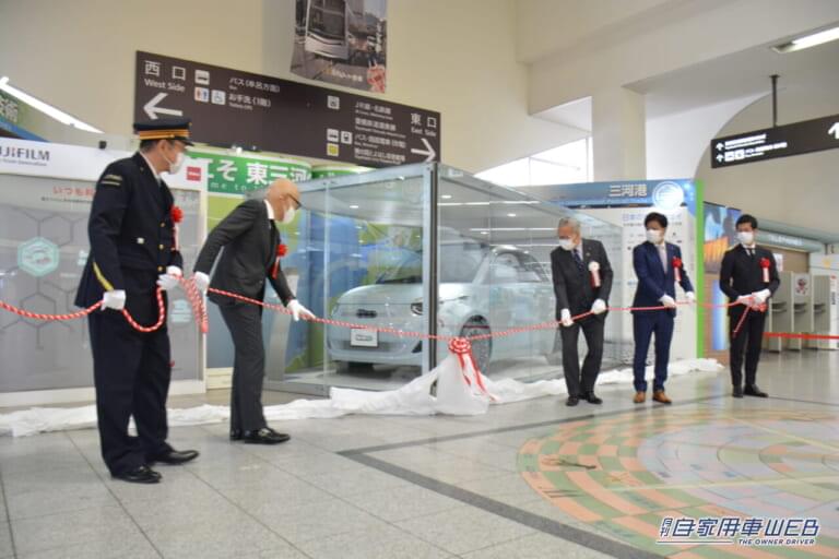 自動車輸入台数日本一である三河港をPRするため、愛知県豊橋市は関東、関西からの玄関口である豊橋駅新幹線改札前に産業プロモーションブースを設置している。2022年11月下旬から、三河港で陸揚げされている輸入車「フィアット 500e OPEN」を展示。年1回、真夜中に行われる車両入れ替えの様子をお届けする。