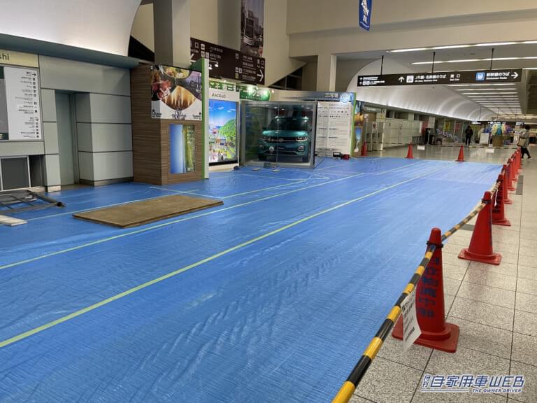 東西連絡通路にある展示用のガラスケースからは、1年間の役目を終えた展示車両が搬出され、クレーンで下ろされていった。