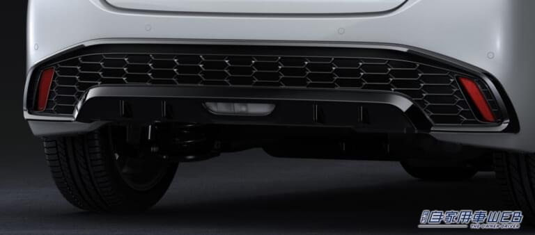 フロントバンパーの形状をベース車から改良し、フロントタイヤ周辺の空気流を整流化し、後方に流すことで空気抵抗を低減。さらに、バンパーサイドまで回り込んだロア加飾バーを「ファンクショナルマトリックスグリル」と融合させることで機能性と上質なデザインを両立。