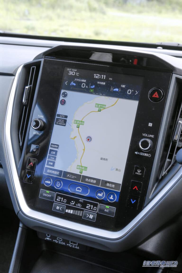縦型の大型ディスプレイは新型のアイコンのひとつ。リミテッドに標準装備、ツーリングはOPで選択可能。ちなみにナビ機能はOPで追加する必要がある。