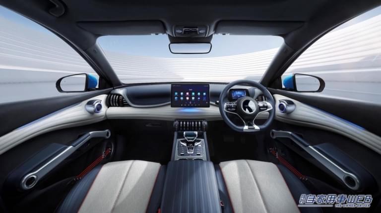 斬新さはインテリア。インパネやドアトリム、空調レジスターが奇抜とまでは言わないが、かなり個性的なデザイン。メーターパネルはステアリングコラム上にコンパクトに設置。対して中央には大型ディスプレイを配し、しかも90度転回して縦長の横長の表示を選択可能。ステアリングのスイッチでワンタッチというのもグラスコックピットの使い勝手で好感触。試乗車は日本向けの細かな適合が終了していないため、ナビを含む情報表示も未整理だったが、多様な情報に合わせた使い勝手はトレンドになりそうな予感がした。