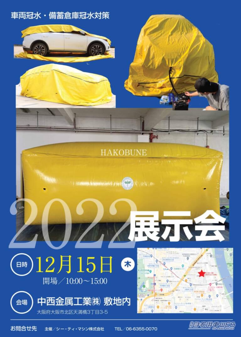 自動ゲートの製品開発を柱とした事業を展開する、シー・ティ・マシン株式会社は、空気注入時間わずか10分で即利用可能な、車両冠水防止製品(ウォーターゲートカバー)「HAKOBUNE(はこぶね)」を、12月15日より販売開始する。救急車のような大型車から小型車まで対応可能だという。