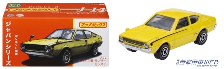 セレステは、若者向けのスペシャリティカー・カテゴリーに向けて、三菱が1975年に発売したモデル。基本的なコンポーネンツは、同社の小型車、ランサーのものを流用していたが、一番の特徴は当時のアメリカ車をダウンサイジングしたようなスタイリッシュなファストバックデザインのボディだ。当時の三菱はアメリカのクライスラーと提携関係にあったことから、クライスラーのプリマス・ブランドからアローの名でも発売され、高い人気を誇っており、マッチボックスではアメリカ仕様のプリマス・アローではなく、右ハンドルの日本仕様、三菱 ランサー セレステとして発売する。