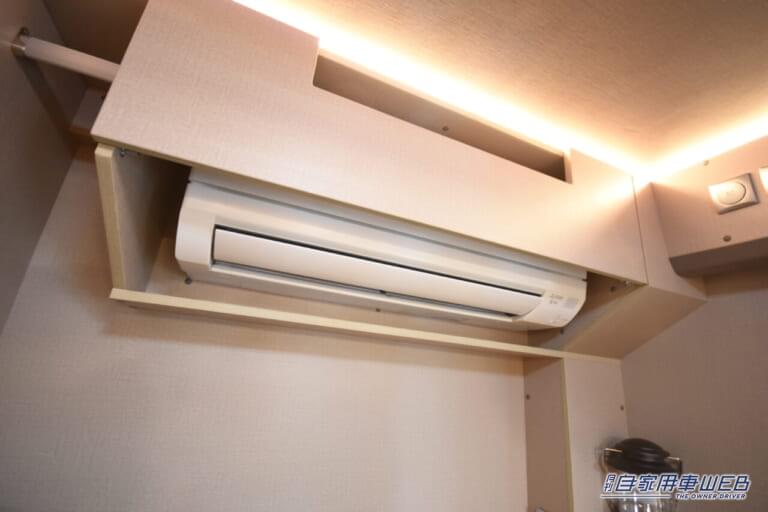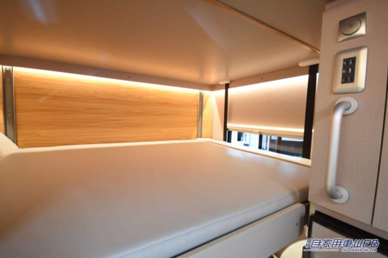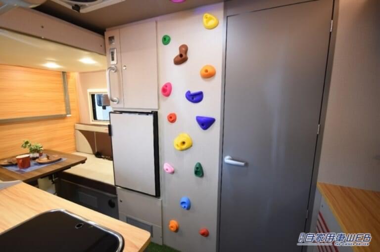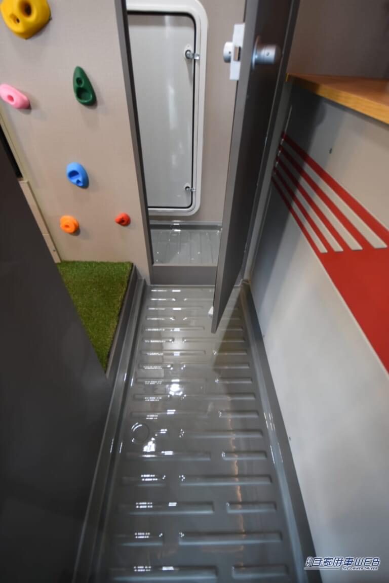 「EXPEDITION EAGLE」では、ベース車両に〈いすゞ〉のキャンピングカー専用シャシー「Be-cam」を採用。「Be-cam」は、同車クラス最大量のオルタネーターを搭載して最大量の発電力を備えるなど、普段使いでは余りある高い機能性が備わり、ドライバーや同乗者の安全・安心を支える。また、シェルでは、通常のキャンピングカー(同社「SAKURA」比)の2倍以上のデパーチャーアングルを確保し、悪路で前後左右が不揃いに隆起している険しい山道でも、車体のねじれ範囲が大きいので、路面の追従性が良く安定した走行を維持。内装床部分の多くに防水パンを敷き詰め、エントランスからマルチルームにあるトイレまで外履きのままで通れるようにするなど、災害時使用も想定したワイルドな仕様だ。