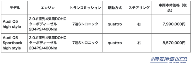 アウディ ジャパンは、プレミアムミッドサイズ SUV、Audi Q5 / Q5 Sportbackをベースに、内外装の機能、装備を充実させた限定モデル Audi Q5 high styleならびにQ5 Sportback high styleを発表。2023年1月11日より全国のアウディ正規ディーラーを通じて発売する。
