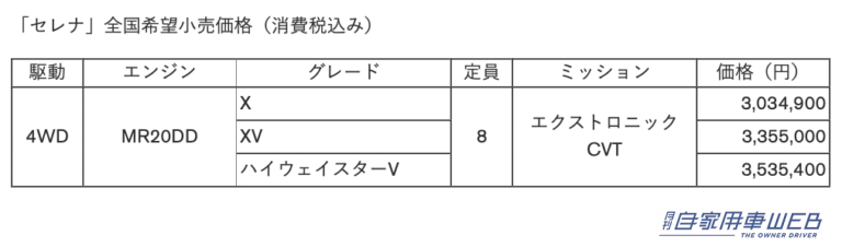 日産自動車株式会社は、21日、新型「セレナ」ガソリン車4WDの価格を発表した。なお、先月発表したガソリン車2WDモデルは12月22日に販売を開始し、4WDは2023年春に発売する予定。