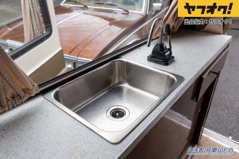 内装はキャンプに特化した装備が満載で、コンロ、シンク、冷蔵庫を備えている。しかしコンロや冷蔵庫は当時モノとなるため、実際に使用するのは難しそうだ。