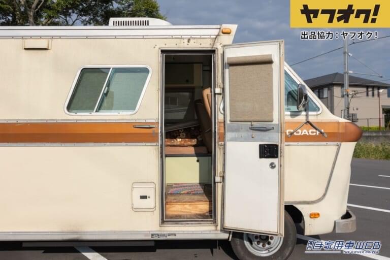 そのボディサイズから圧倒的な存在感を放つのが、この「シボレースポーツコーチ」だ。それもそのはず当個体はキャンピングカーの中でも最大級の大きさとなる所謂フルサイズキャンパー。