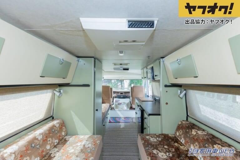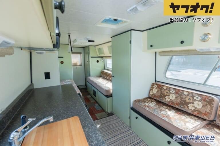 当個体は内装が前のオーナーによって大幅に作り替えられており、外装とは裏腹に現代的な快適装備を備えている点もポイントだ。外付けの発電機に加え、冷蔵庫、電子レンジを装備し、日本規格のコンセントまで備えている。シンクキッチンも広々としてキャンプ先でも本格的な料理が楽しめる。
