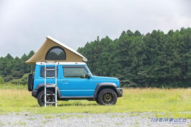 ジムニーのルーフキャリアに装着できるルーフテントは数多く発売されているが、汎用性が高い一方で、高速走行時の風切り音が気になったり、装着時の重心が高くなることで、ジムニー本来来のオフロード能力が発揮できないことも多かった。