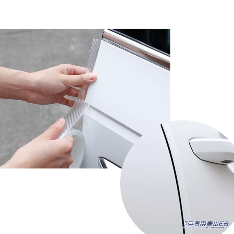擦りキズが付きやすい場所にこのフィルムを張り付ければ、キズから汚れから愛車を守ることができる。