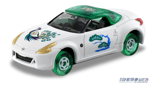 トミカ初の孔雀をモチーフとしたデザイン。羽の模様に「魔除け」の意味があるとされる縁起物の孔雀。美しく優美な羽を広げている様をイメージ。鮮やかなクリアグリーンのルーフ(クリアパーツ)は取り外し可能。