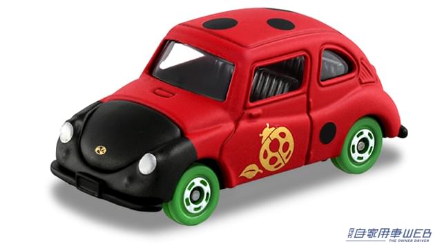 スバル360の愛称は「テントウムシ」。「金運上昇」や「幸福」の縁起物である天道虫が天道(太陽)へ向かって葉っぱの上を進んでいる様子をイメージ。緑色のホイールは葉っぱを表現している。