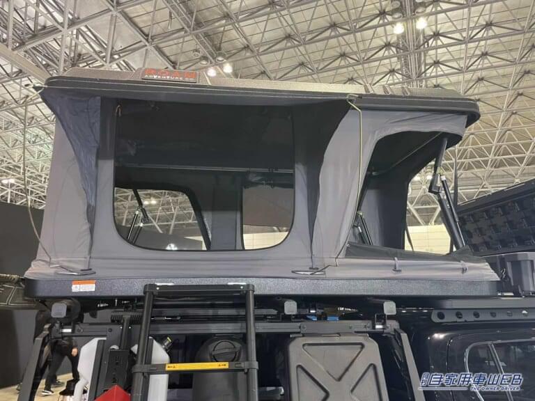 広いルーフテント、頑丈なコンテナ、シャワーホースまで!