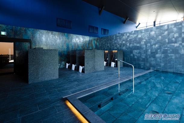 星空をテーマとした大浴場、露天風呂。満月・新月をイメージしたデザインとなっており、広々とした空間を楽しむことができる。