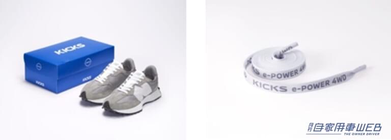 「日産キックス」の車名“KICKS”には、英語のスラングで「スニーカー」の意味があり、それが今回のタイアップ発想の原点となっている。数あるブランドの中でも、アクティブでフットワークが軽く楽しいライフスタイルを過ごすことのできる印象を持つ、ニューバランスに声をかけて実現した。