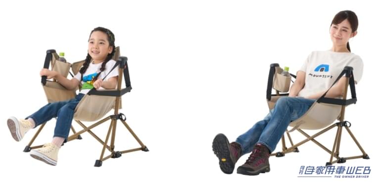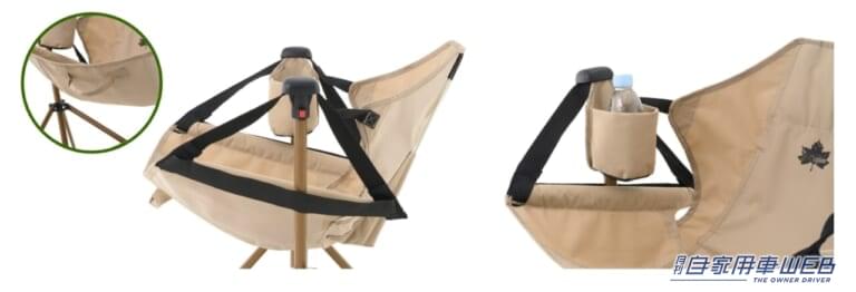 フレーム抜け&転倒防止ストッパー付きの安全設計で、子供の使用も安心。座面裏面にはハンドル、飲み物や小物が置けるドリンクホルダーも装備している。
