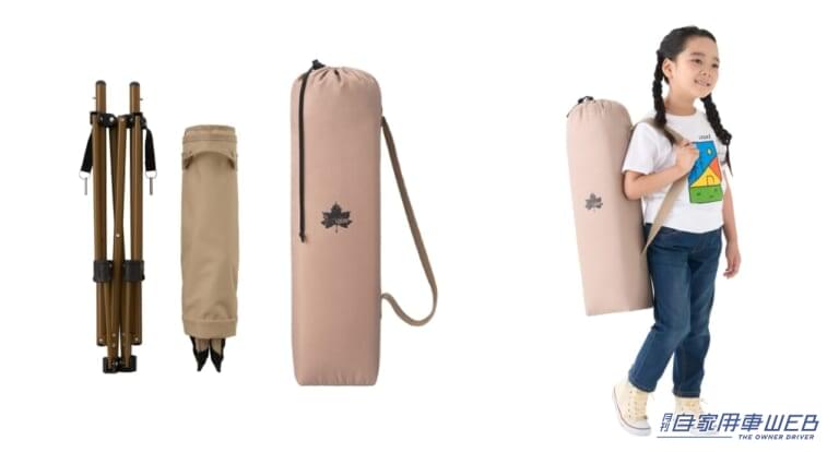 パーツの分解が可能な組立て式で、片付ける際は驚くほどコンパクトに。さらに、重さは約2.2kgと軽量で、ベルト付きの収納バッグも付属する。そのため持ち運びもラクラクだ。