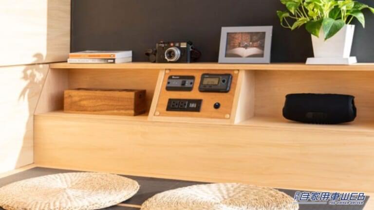 ノマドプロのコンセプトは、自然の持つ癒しの力を車両の機能とデザインに取り入れること。キャンピングカー製造で培った応用力を活かし、家具には木口に綺麗な積層がでるシナ材をセレクト。