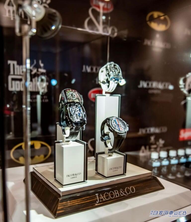 また、ブガッティとコラボした、Jacob & Co.の高級時計も展示。W16エンジンの動きを再現した複雑機構を搭載した「ブガッティ シロン トゥールビヨン」などが並んだ。