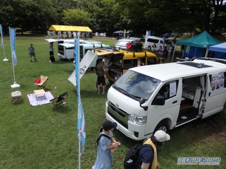 「ちがさきキャンピングカーフェス2023」には災害時でも機動力を発揮するコンパクトな軽キャンパーやミニバン等の車中泊モデル、本格的なキャブコンバージョンまで様々なモデルが集まる。
