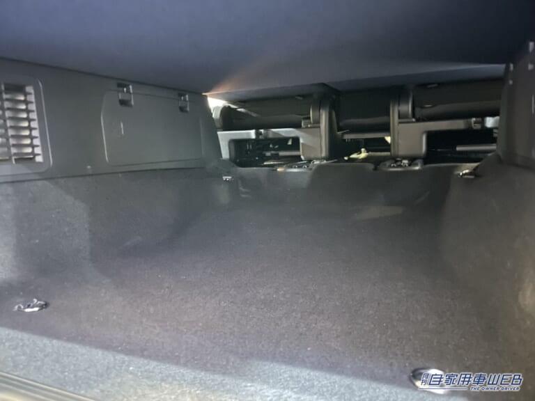 シートの下部には積載スペースも。フラットシート全面を就寝スペースとして使っても、荷物をしっかり積み込める。