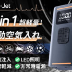 Gamp-Jetはリチウムイオンバッテリーを使用しており、電源の持続時間が長い。6000mAhの大容量バッテリーなので、満タンに充電した後であれば、最大4台の車のタイヤに空気を入れることが可能。さらにUSB出力により非常電源として、携帯電話や電子機器の充電もできる。