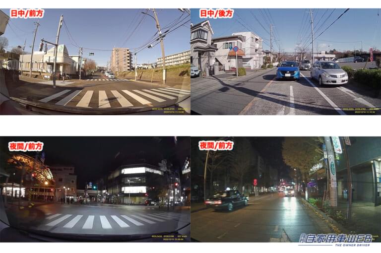 CS-93FHはセルスターの主力モデルで、注目ポイントは暗所での撮影性能に優れていることだ。センサーは高感度なSTRVIS IMX327を採用し、同社最新技術であるナイトクリアVer.3を搭載。下の写真を見てわかるように夜間でも驚くほど鮮明な映像記録を実現している。フロントはヘッドライトが当たらない歩道や離れた場所の状況まではっきりわかり、リヤは色付きガラスを介しているにもかかわらず照明の少ない場所も十分な明るさを確保。前後とも記録画質はフルHDとなる。