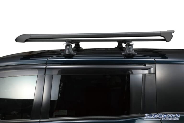 リア側に向けてルーフが下がっているデザインの車両に対して、ラックが後ろに傾いて見えることがないよう、リアに向けて上昇する形に設計。
