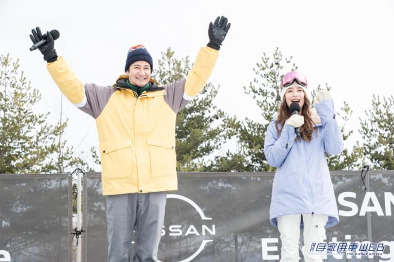 さらに、2月18日から19日までの2日間、「NISSAN e-4ORCE SKI RESORT」として期間限定の特別なスキー場がオープン。それにあわせて行われたオープニングセレモニーには、タレントのJOYさんとモデルのNikiさんが登場した。