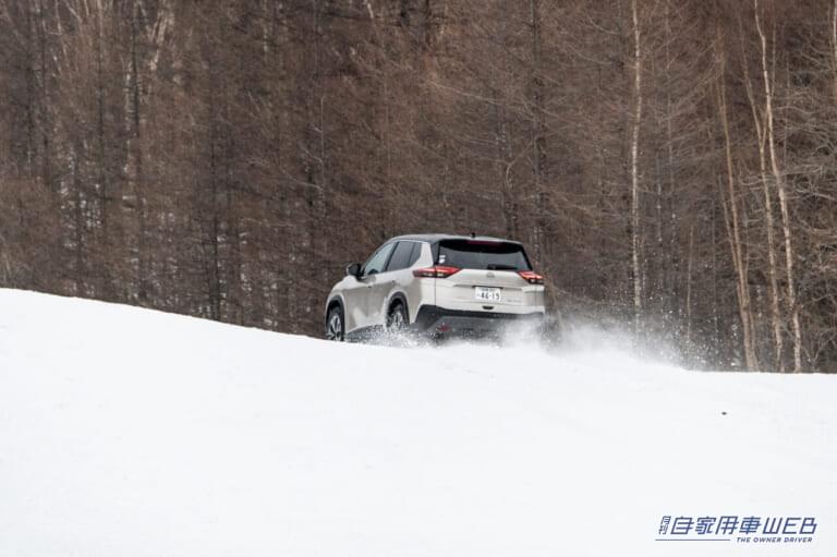 また、滑走時間終了直後には、エクストレイルがゲレンデに出現。最大斜度が18度もある雪の上を豪快に駆け上がるダイナミックなデモンストレーションが行われた。