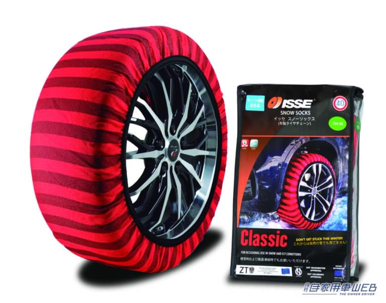 イッセ社が開発・ 製造する高強度ファブリックのタイヤチェーン「イッセ・スノーソックス」は、業界最⼤級の耐久性に加え、雪道での確かなグリップ性能、タイヤに対する適合の広さなどから日本でも⾶躍的に販路を拡⼤している。