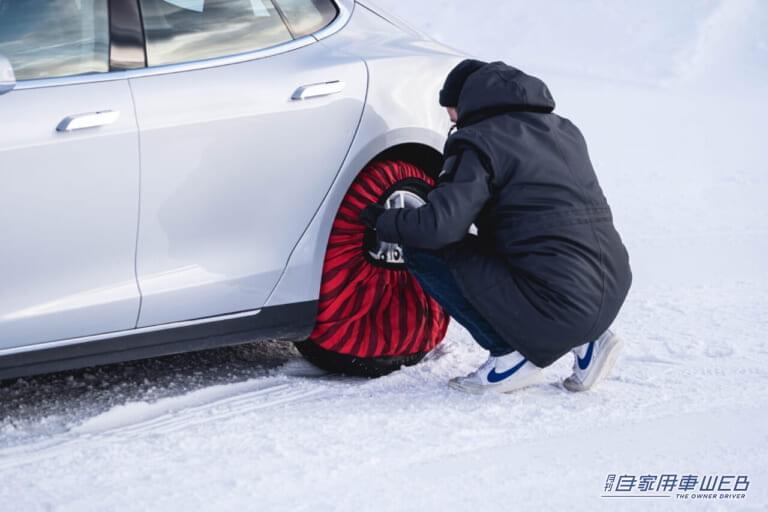 イッセ・スノーソックスは乗⽤⾞のみならずロードサービスや道路補修⼯事の車両にも使われている。国土交通省の地方整備局では、⼤型⾞の緊急脱出⽤具として、今季からイッセ・スノーソックスを試験導⼊。今回の未来都タクシーでの採用を機に、公共の場での布製タイヤチェーンの更なる活躍が期待されている。