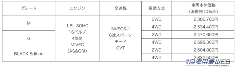 「M」グレード外観変更