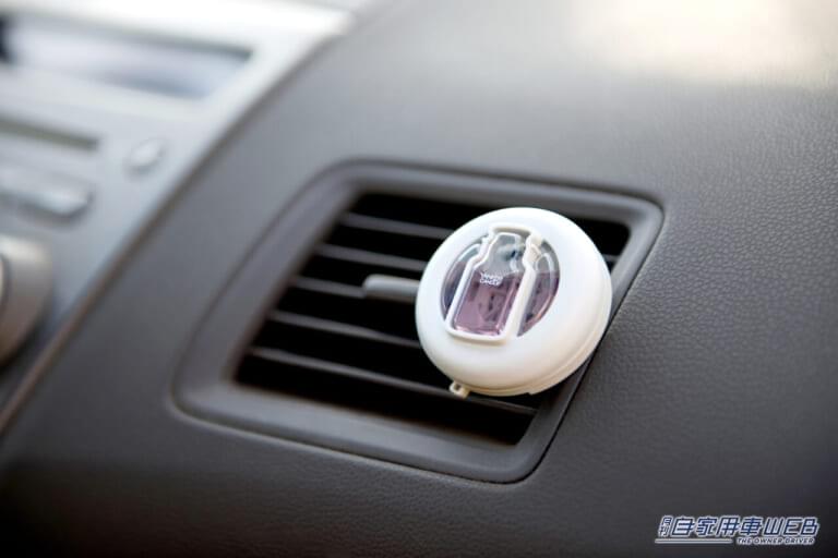 カーフレグランスクリップは、エアコンの吹き出し口に差し込んで使うタイプのフレグランス。車中のイヤなニオイを中和し、心地よい香りで快適なドライブ空間に。フレグランスオイルの量が見えるので、取り替え時期が一目で分かり、本体下部についているレバーを動かすことで香りの強さも自由に調整できる。