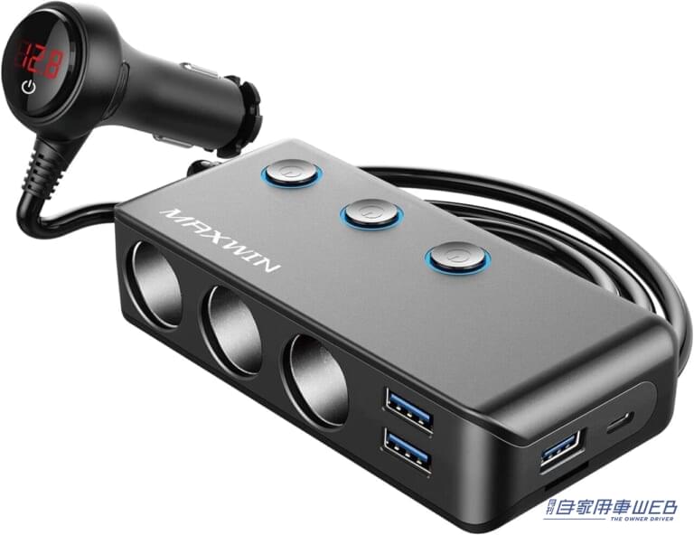 ◆LED付の電源スイッチ搭載でシガーソケットを差し込んだままそれぞれの電源ON/OFF可能。