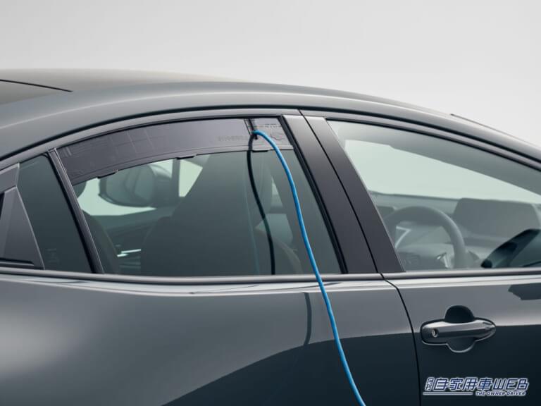 太陽光を効率よく電力に変換し、1年間でEV走行1,250km分に相当する電力を生み出す第2世代の「ソーラー発電システム」を採用。高効率ソーラーパネルを車両ルーフに搭載し、充電スタンドがない駐車場や災害等で停電した場合でも、太陽光さえあれば充電が可能だ。