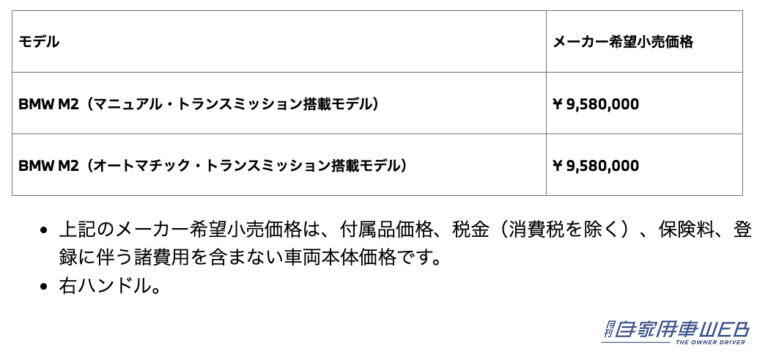 ビー・エム・ダブリュー株式会社は、プレミアム・スモール・コンパクト・セグメントにおける高性能BMW Mモデル「BMW M2(エム・ツー)クーペ」の新型モデル(全面改良)を、全国のBMW正規ディーラーにおいて、注文を開始した。納車は、4月からを予定している。