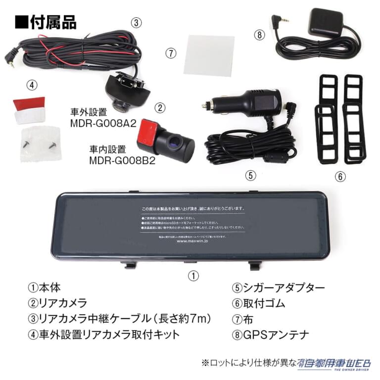 MAXWINからズーム機能を搭載したミラー型ドライブレコーダー「MDR-G008A2」が発売された。