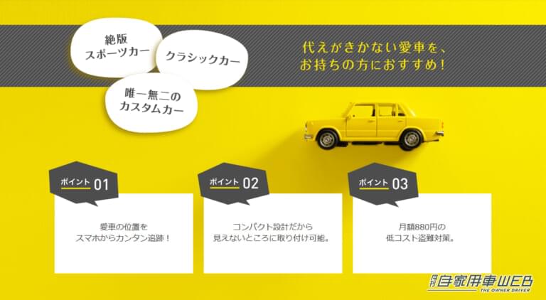 新サービス『MAMORUCA』は、代えのかきかない愛車を盗難などの不安から解消するために、GPSトラッカーと位置情報がわかるWEBコンソールを組み合わせたシステムだ。