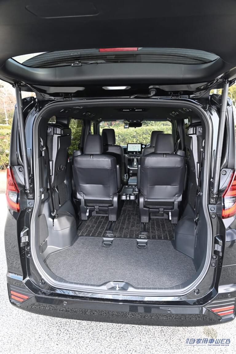 そして、これまでミニバンを使っていて不便だと感じていた弱点を、ことごとく改良したのもお見事! バックドアはスイッチや手動で好きな角度で開け閉めでき、3列目シートの格納は片手でワンアクションの簡単操作で、子育て中の家族もストレスフリーです。