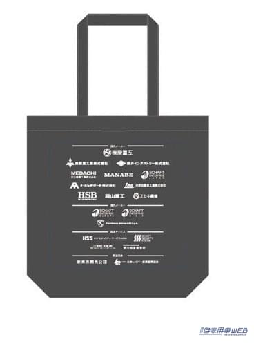 幕張国際レイバーショウの開催を記念して作られた全出展社名入りのトートバック。