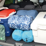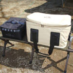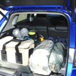 一見スッキリとした見た目と荷物がまとめて収納できるハードコンテナはキャンプでは人気のアイテムだ。だがスペースの1/3くらいを占領しており、ケースも肉厚のためデッドスペースが生まれやすい。左側のクーラーボックスもハードタイプのため、使わない時には多くのスペースを無駄に使ってしまう。
