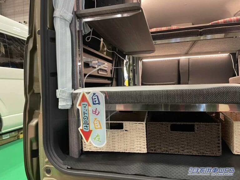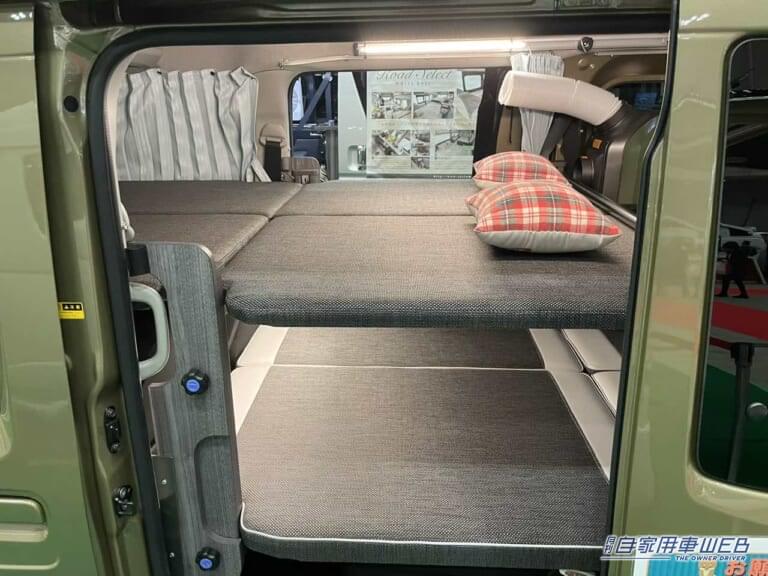 この軽キャンパーの特徴は、通常のシートの上に就寝用のシートをもう一段設置しているところ。